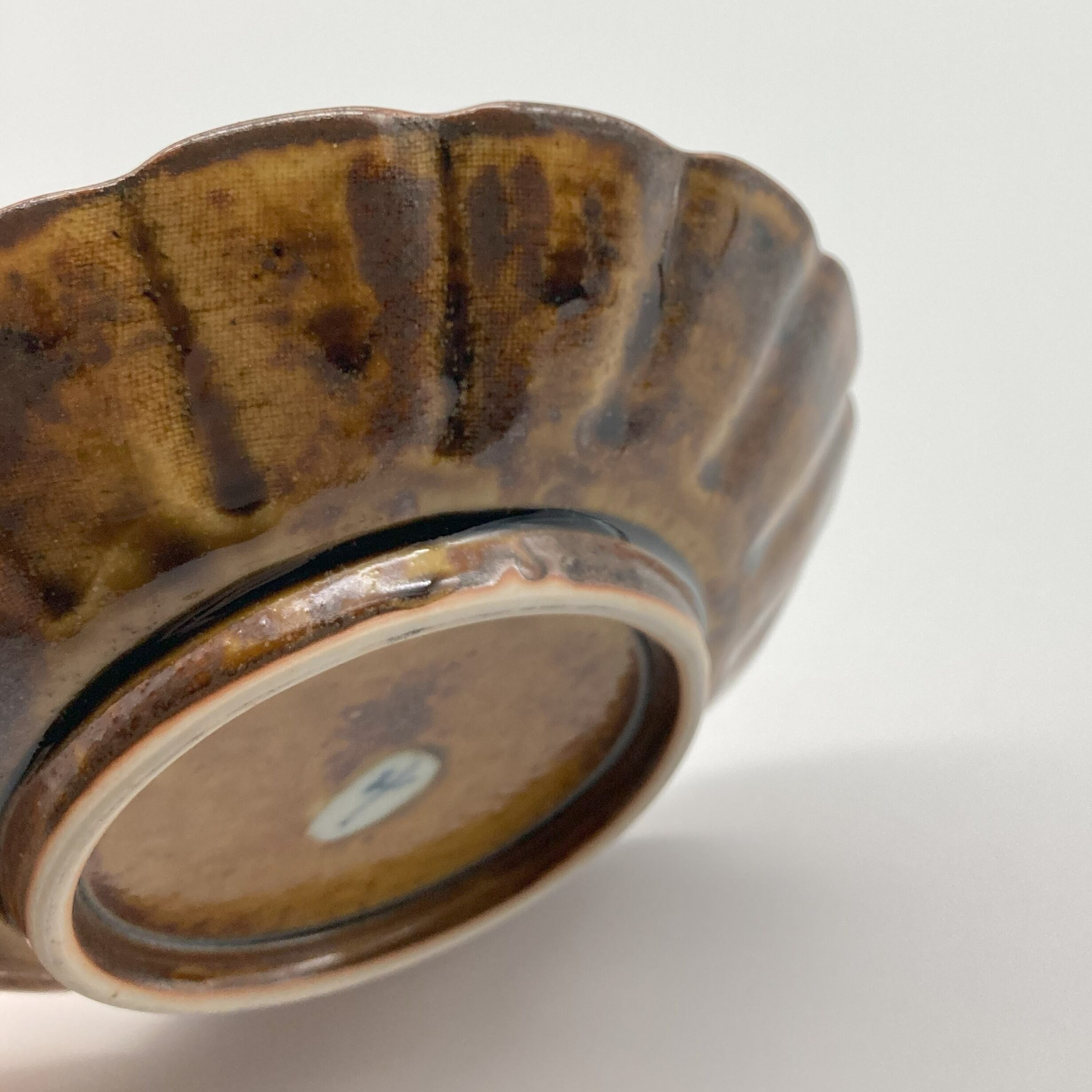 Mr. Yanagawa creates his work with the goal of enhancing a wide range of dishes. Inspired by classical aesthetics, his pieces feature soft, gentle tones, beautiful colors, and forms that feel comfortable in the hand with a pleasant mouthfeel. This stylish small plate features three decorative blue accents set against a warm amber-brown glaze. Its modern yet traditional look makes it a versatile piece—perfect not only for Japanese cuisine but also as a side plate for Western dishes.
