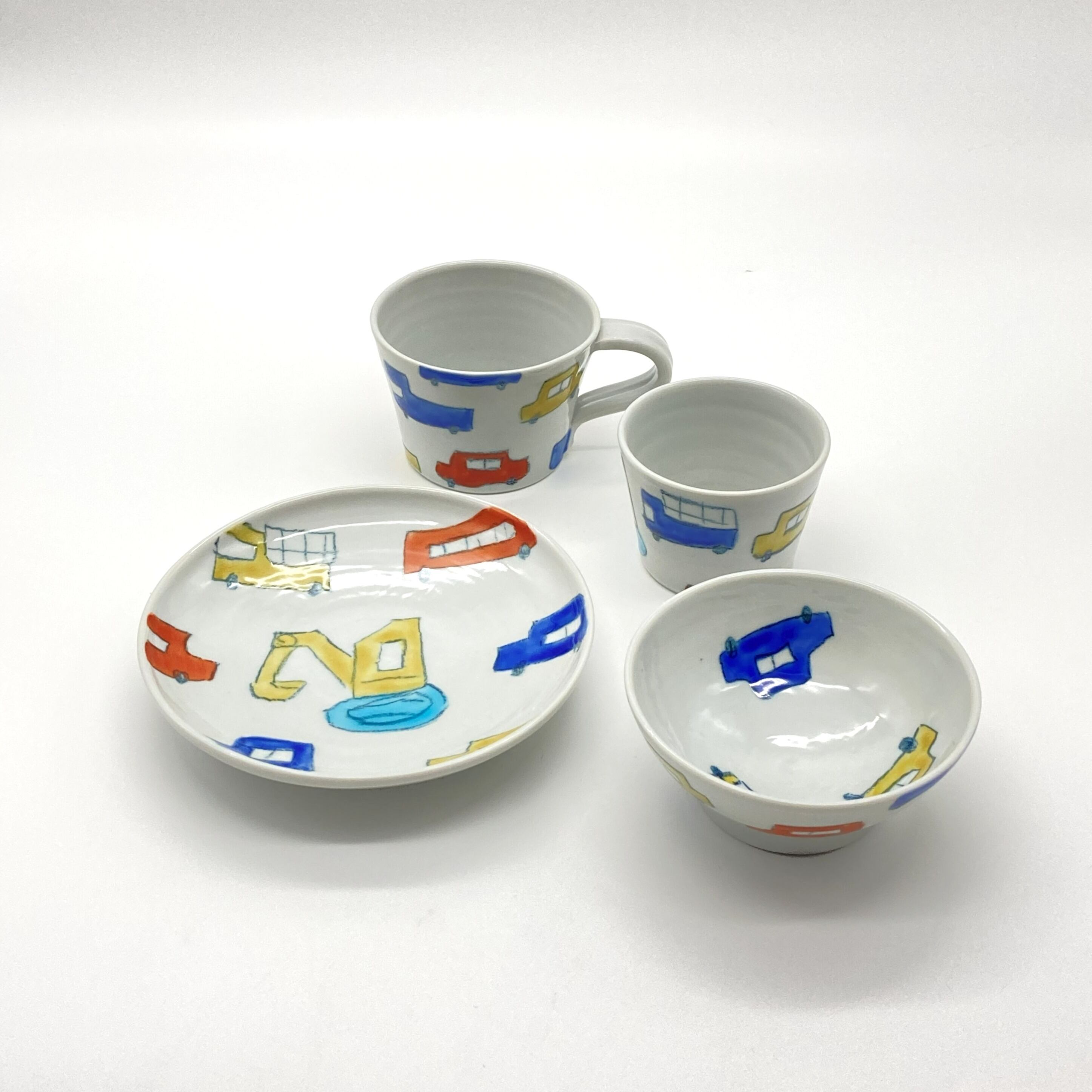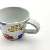 カラフルで様々なくるまが描かれている人気の「くるま」シリーズのマグカップ。お子様でも大人でも使いやすいサイズです。握りやすく安定感がありますので、飲み物だけでなくスープ用としても。