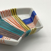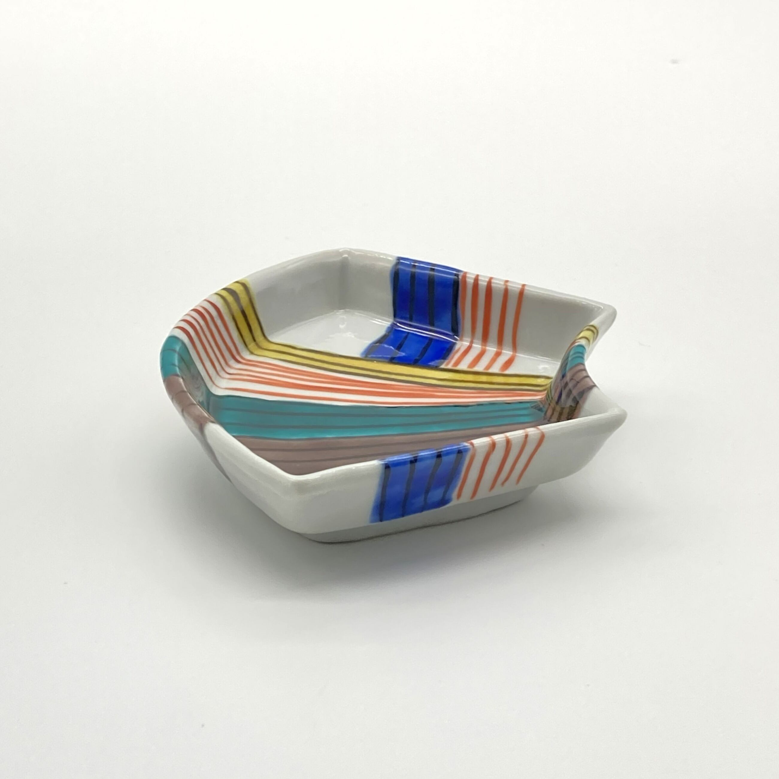 九谷焼らしい華やかな色合いと縁起の良い扇の形が合いまった小皿。立ち上がりが少々の汁気でも受け止めてくれます。長寿や子孫繁栄の願いが込められた「糸巻」模様のお皿を、特別な日だけでなくぜひ日常でも取り入れてみてはいかがでしょうか。