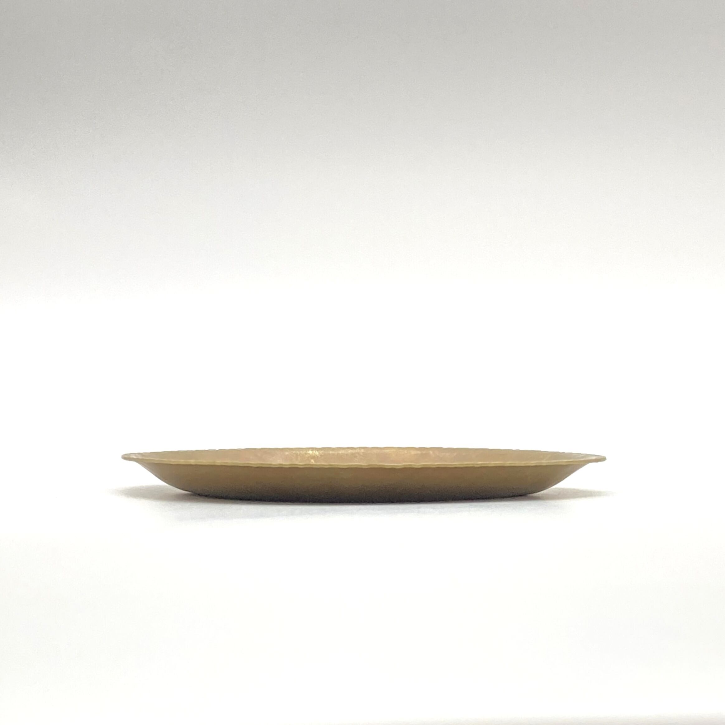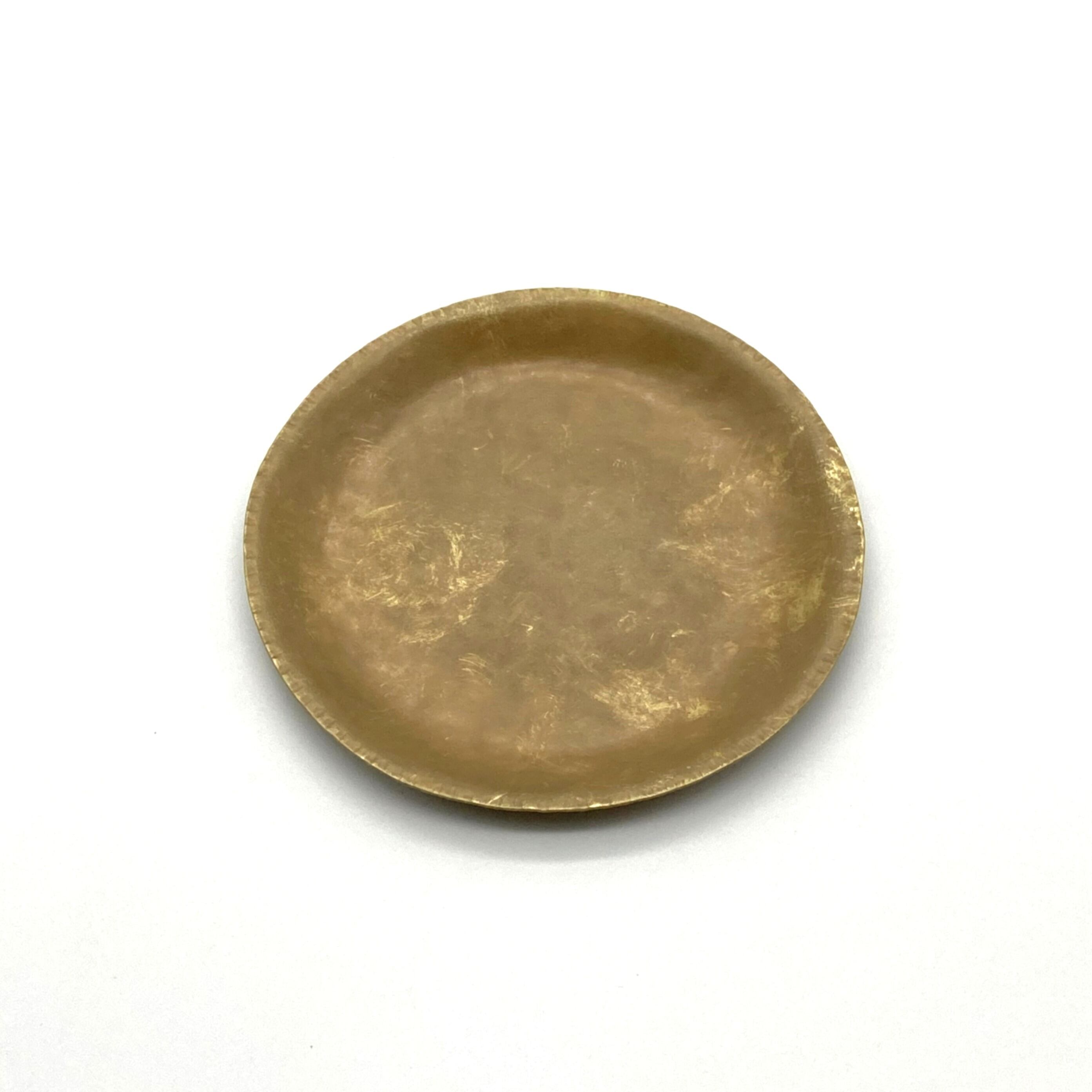 一打一打金槌を打ち込むことによって作られた、やわらかい雰囲気が日常へ取り入れやすい田中さんの作品。真鍮アイテムがひとつあるだけで食卓が引き締まります。銘々皿やパン皿、コースターとしても使いやすい万能サイズなお皿です。