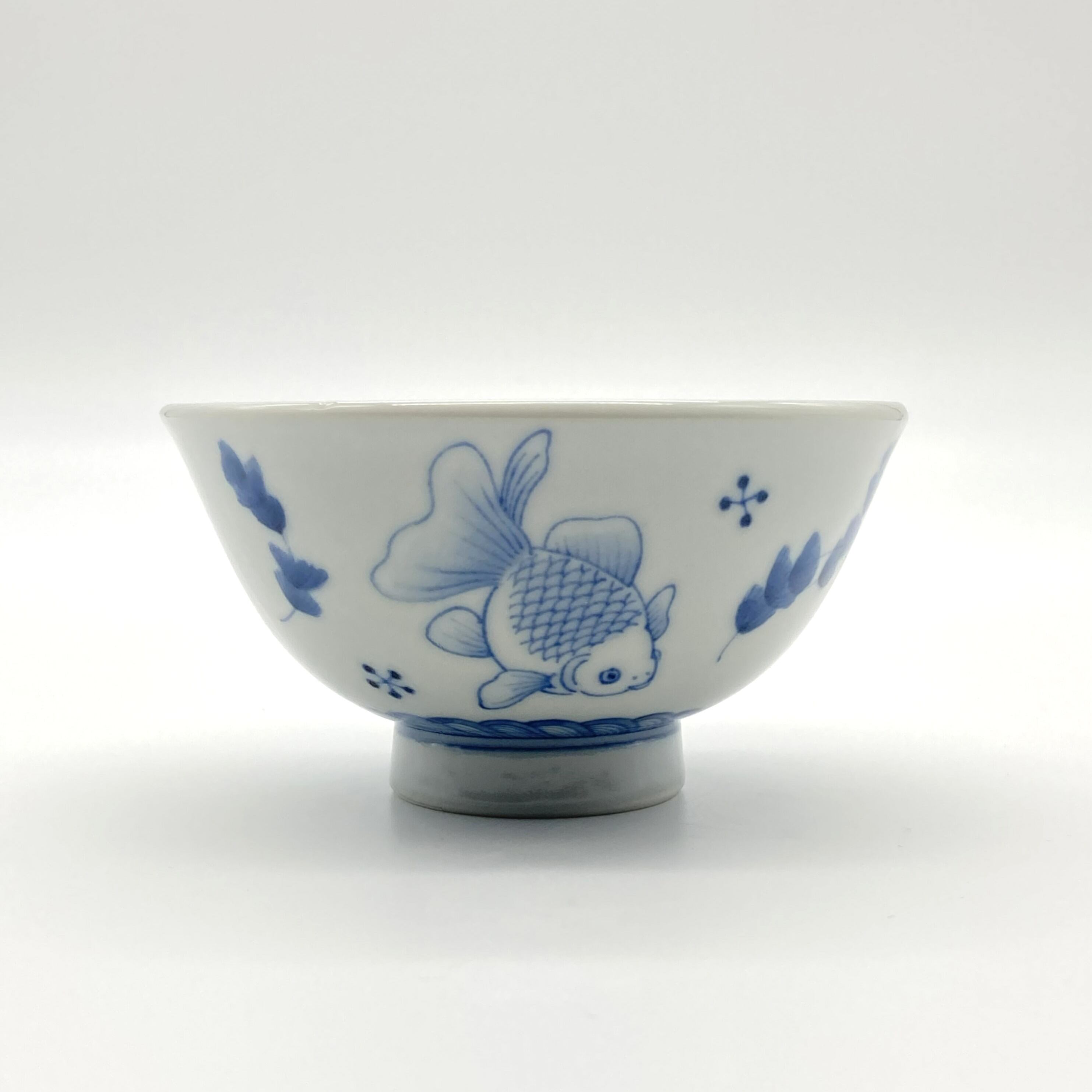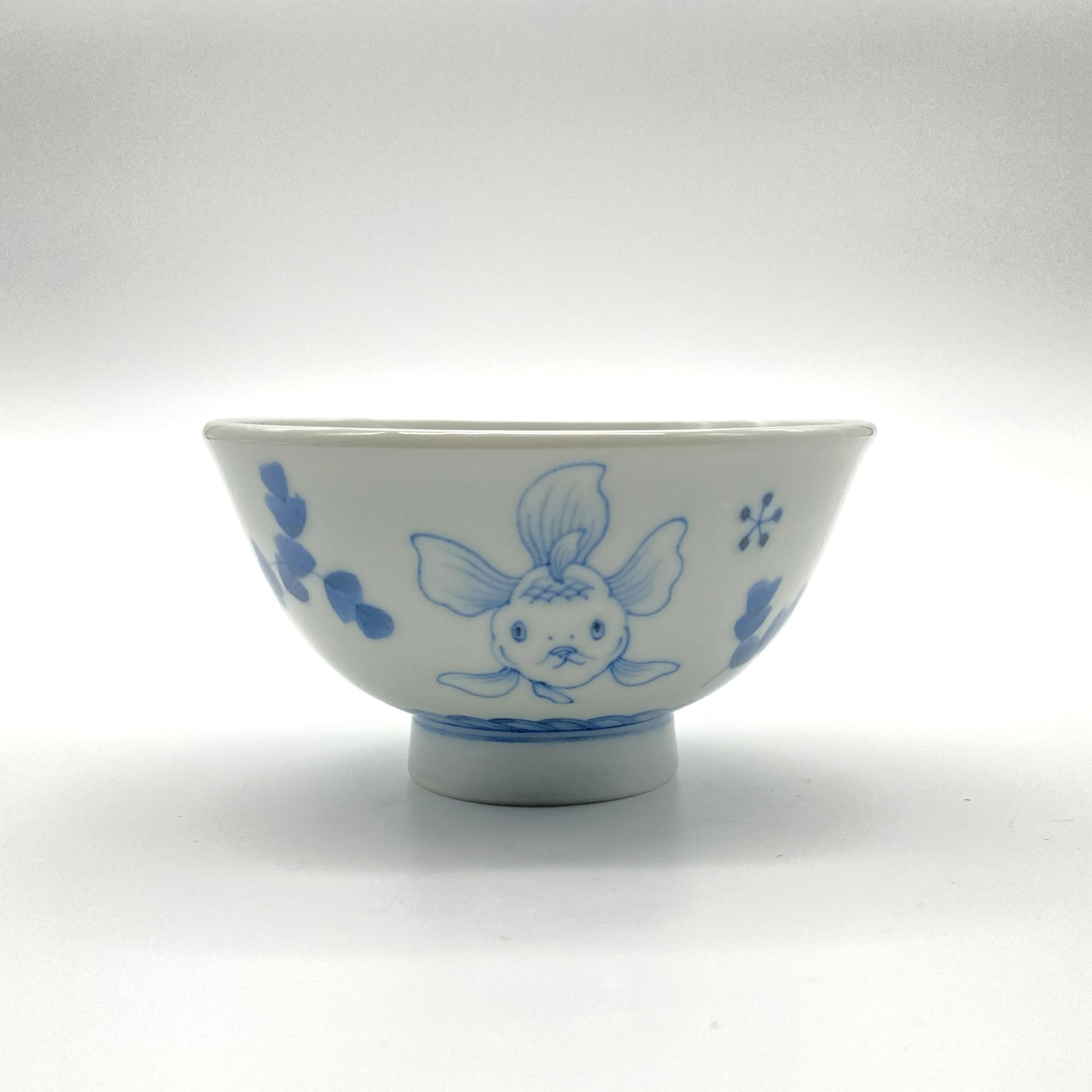 古典モチーフをベースにしながら、卓越した緻密な描画技術によって独自の図柄表現が特長の川上さん。福福しく、様々な表情の金魚がいくつも描かれた飯碗。お椀の底にもしっかり描き込まれ、ぜひ食べ終わる時のお楽しみに。