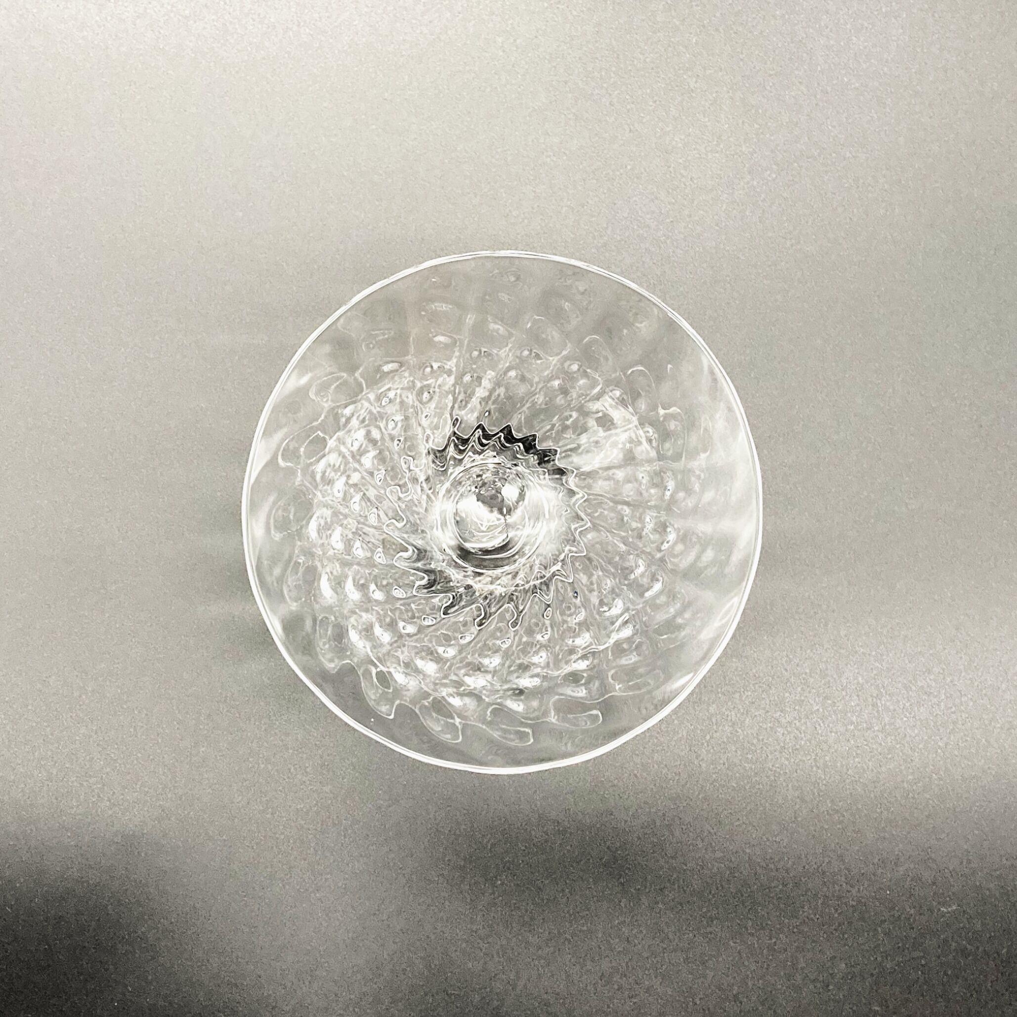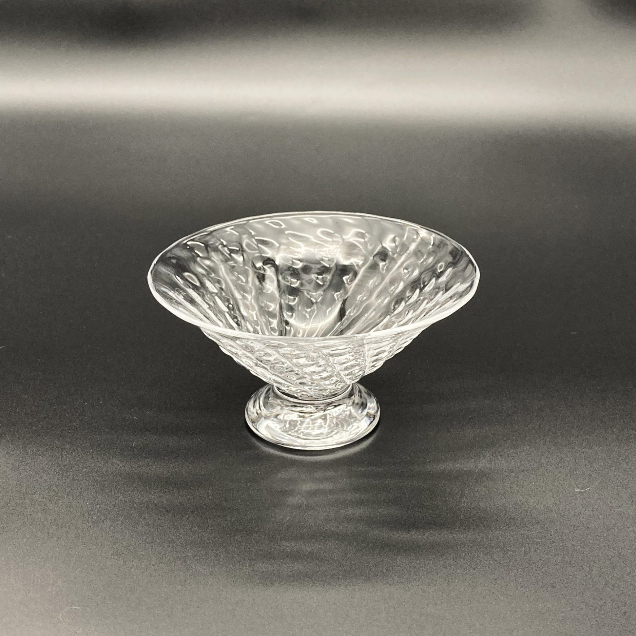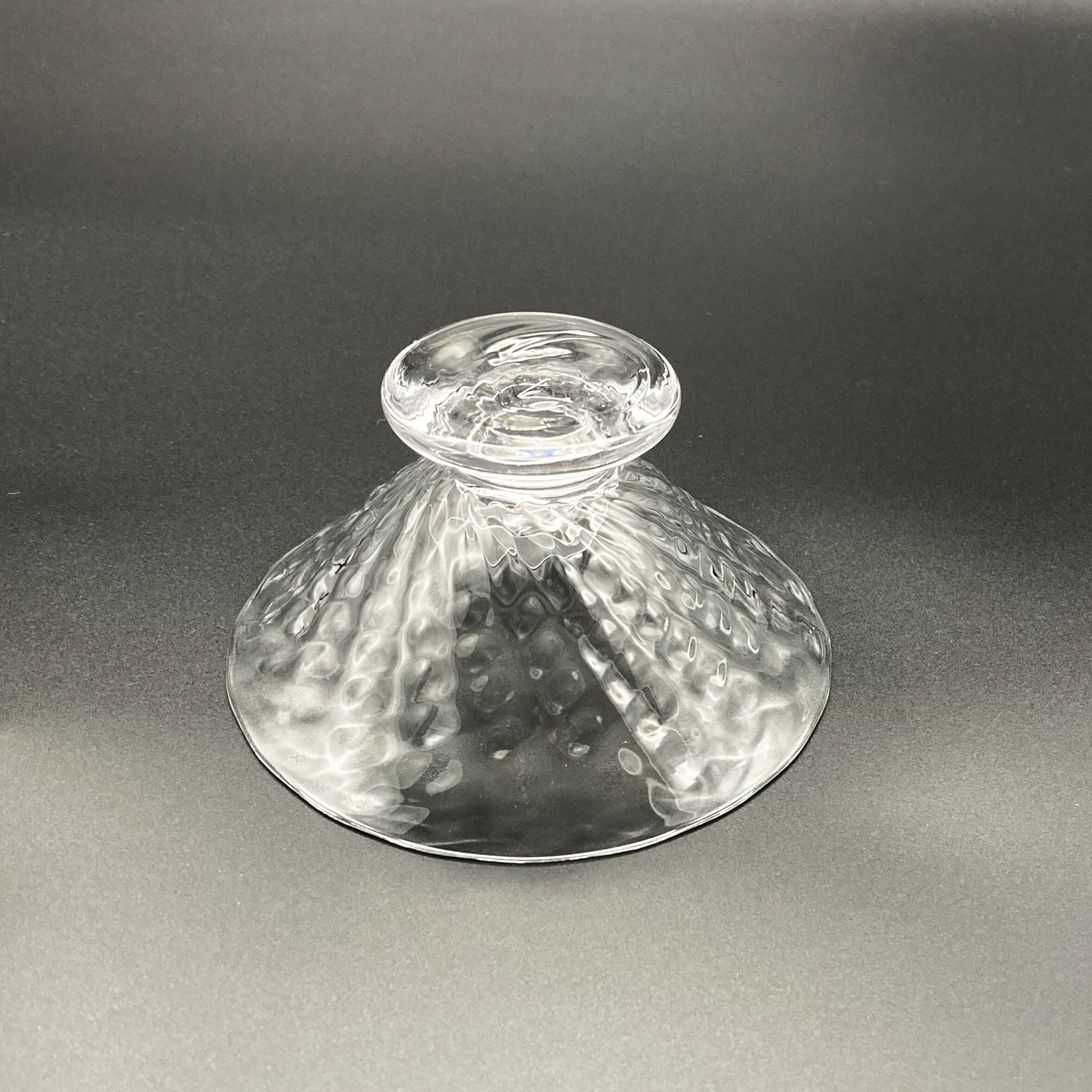 Ms. Kawakami’s glassware captures the gentle shimmer of water swaying in a soft breeze, blending delicacy with warmth. Its pleasantly weighted form and beautiful silhouette evoke a sense of nostalgia and comfort. The clear, luminous quality of the glass—one of her signature characteristics—reflects the artist’s focus on creating pieces suitable for everyday use. This dessert glass, featuring a charming strawberry-inspired textured pattern, instantly elevates any dish you serve. Perfect for ice cream, pudding, fruit, and more.