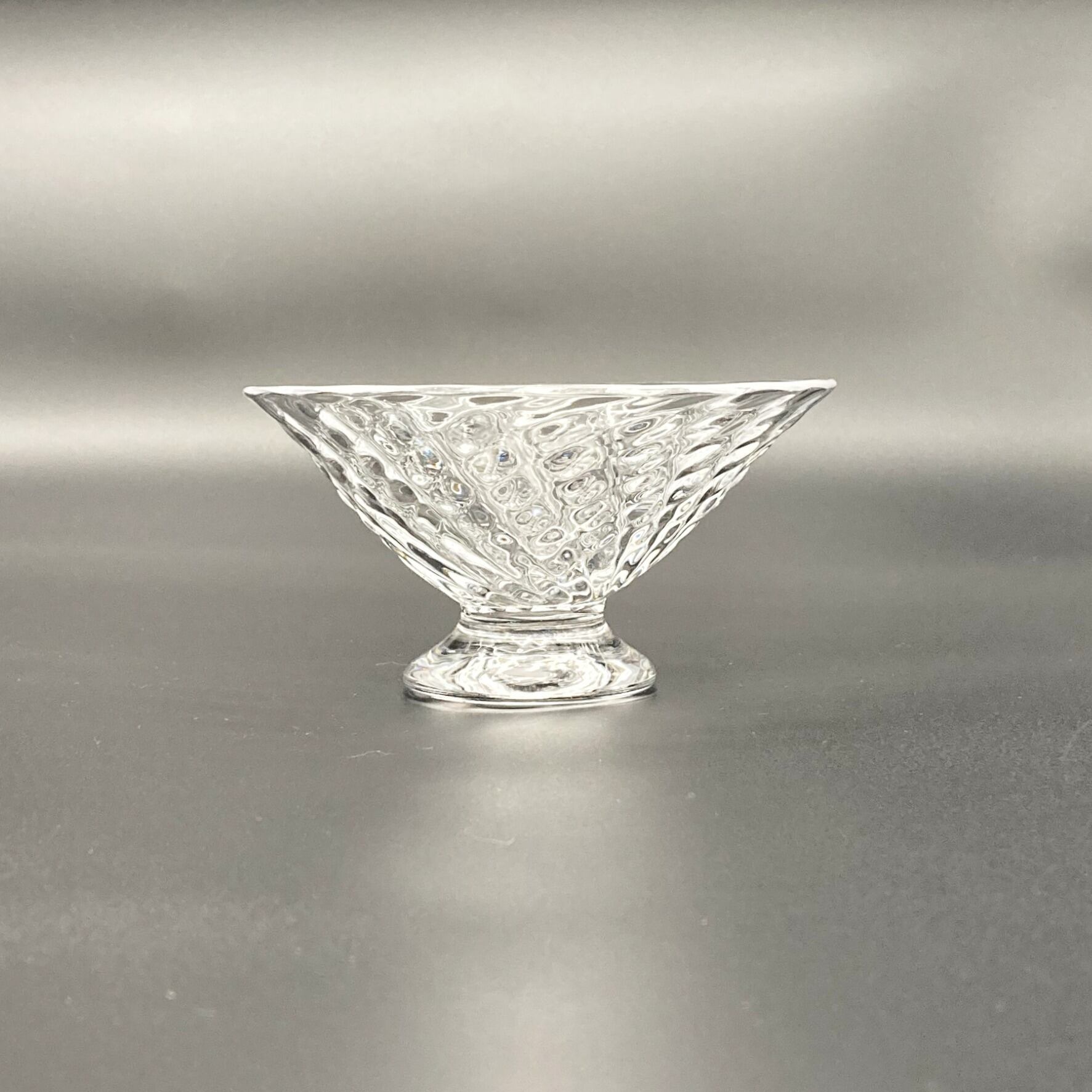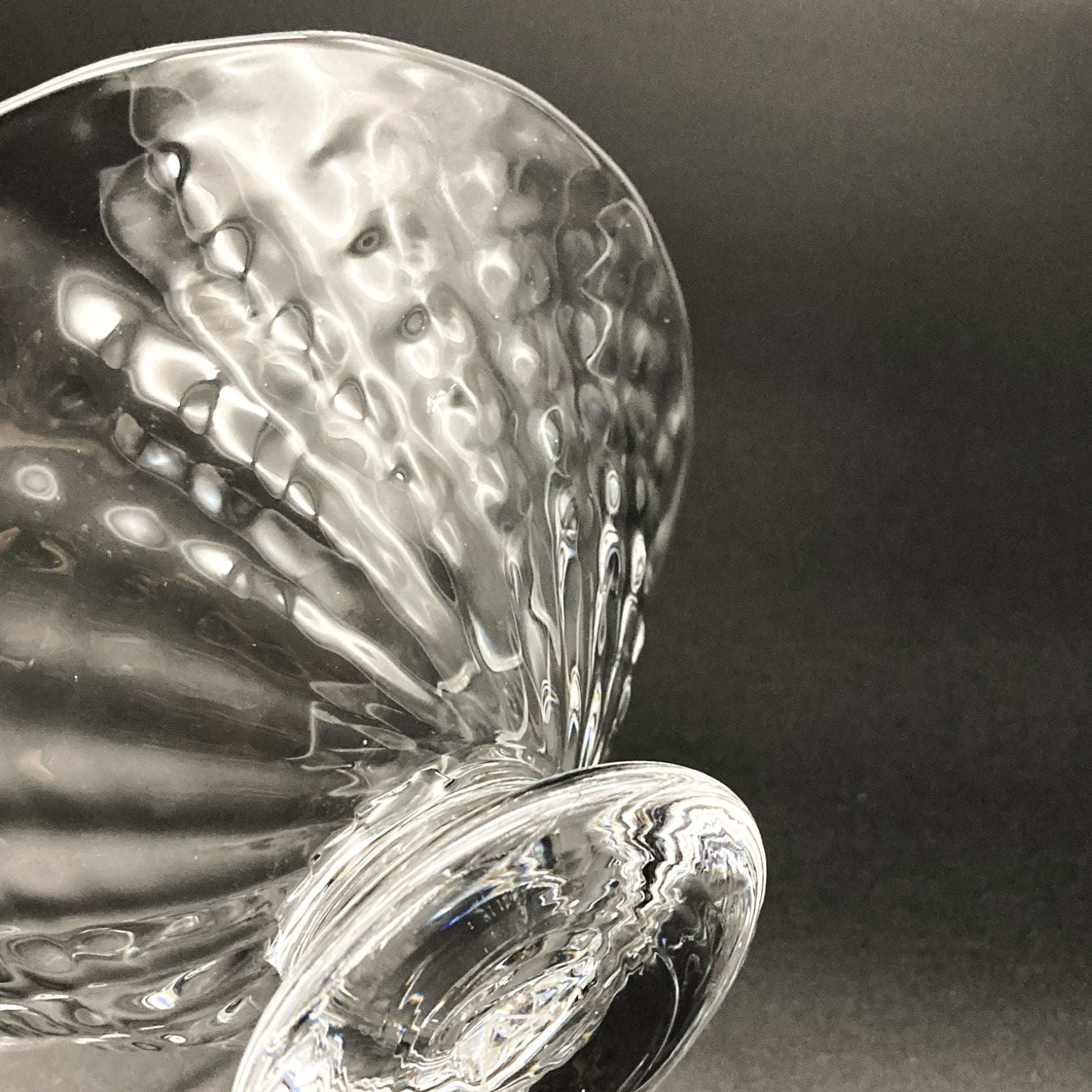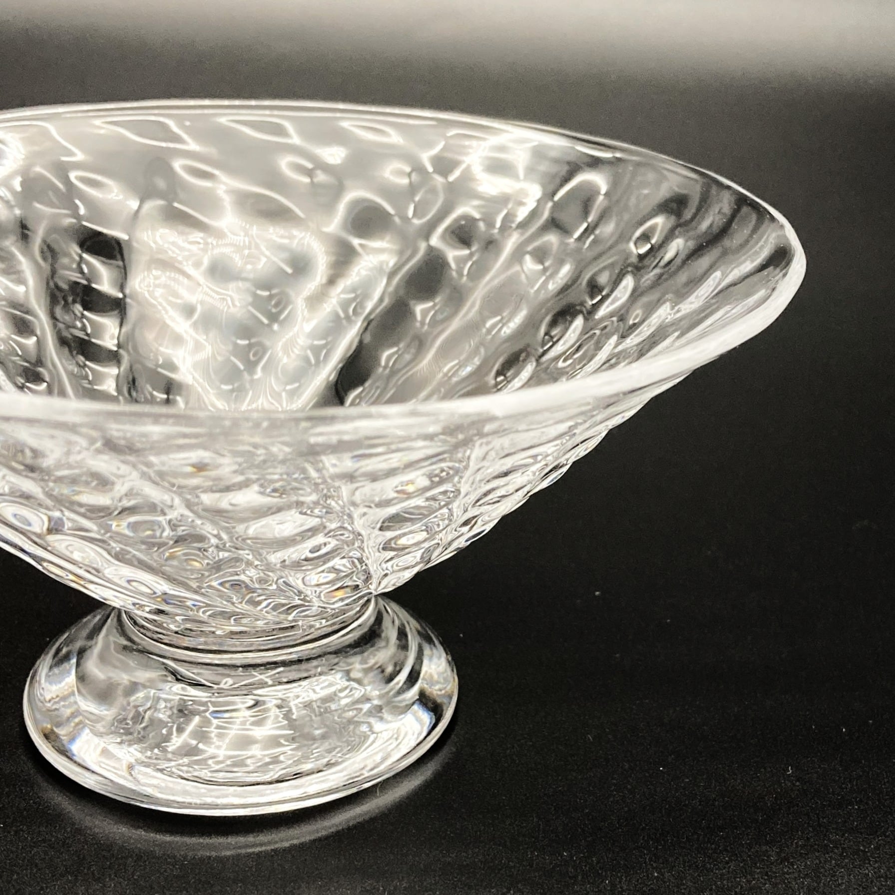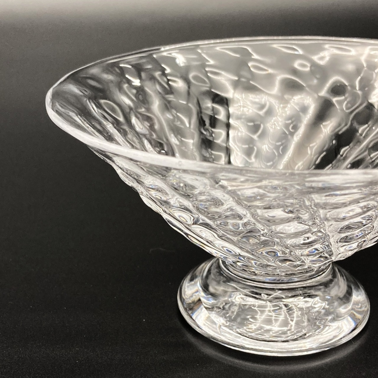 Ms. Kawakami’s glassware captures the gentle shimmer of water swaying in a soft breeze, blending delicacy with warmth. Its pleasantly weighted form and beautiful silhouette evoke a sense of nostalgia and comfort. The clear, luminous quality of the glass—one of her signature characteristics—reflects the artist’s focus on creating pieces suitable for everyday use. This dessert glass, featuring a charming strawberry-inspired textured pattern, instantly elevates any dish you serve. Perfect for ice cream, pudding, fruit, and more.